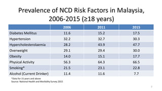 Provides the framework for strengthening NCD prevention control program in Malaysia. More than a quarter have at least two NCDs and almost 10 percent have all three. Coupled with the infectious COVID-19 virus patients with NCDs are prone to more complications that can cause a severe deterioration to their health 2.