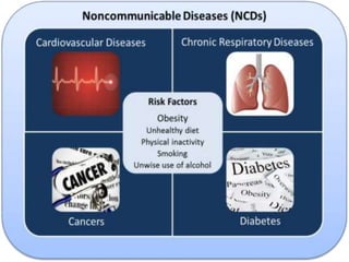 The Causation Pathway for NCDs Underlying Determinants Globalisation Urbanisation Population Ageing Common Risk Factors Unhealthy diet Physical Inactivity Tobacco Alcohol use Age non-modifiable Heredity non-modifiable Intermediate Risk Factors Overweightobesity Raised blood sugar Raised blood pressure Abnormal blood. The National Strategic Plan for Non-Communicable Disease calls for concerted efforts in the prevention and control of NCD in Malaysia with specific focus on NCD risk factors. Given the complexity of managing NCDs there is growing evidence that interventions embedding or incorporating health promotion strategies can help reduce the disease burden of.